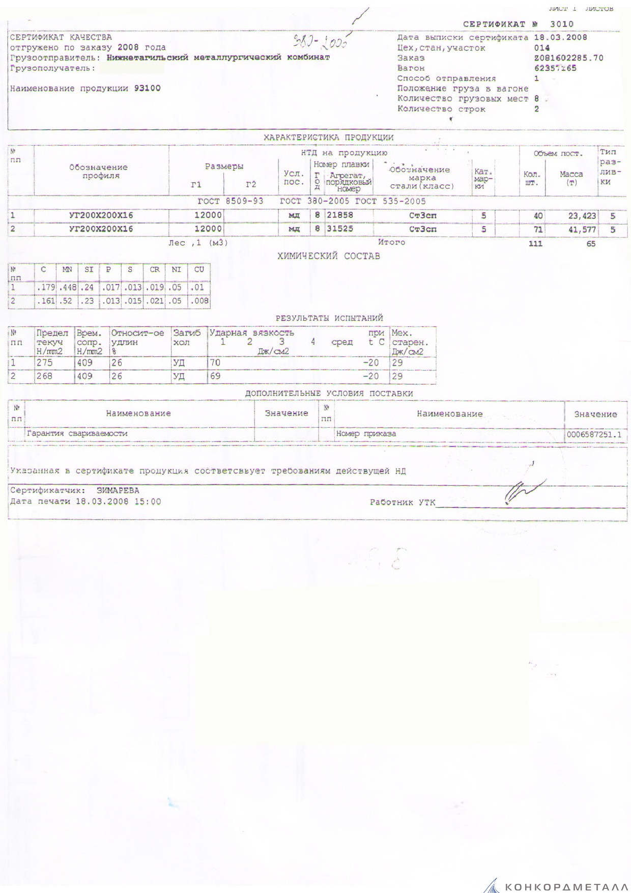 С каждой товарной позицией мы предоставляем все сертификаты и паспорта качества, а также товарно-транспортную накладную.